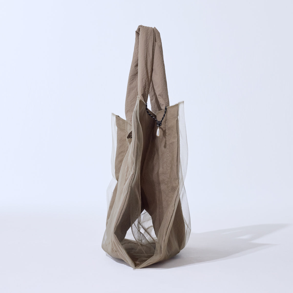 両サイドのパール付きロープでギャザーを寄せて