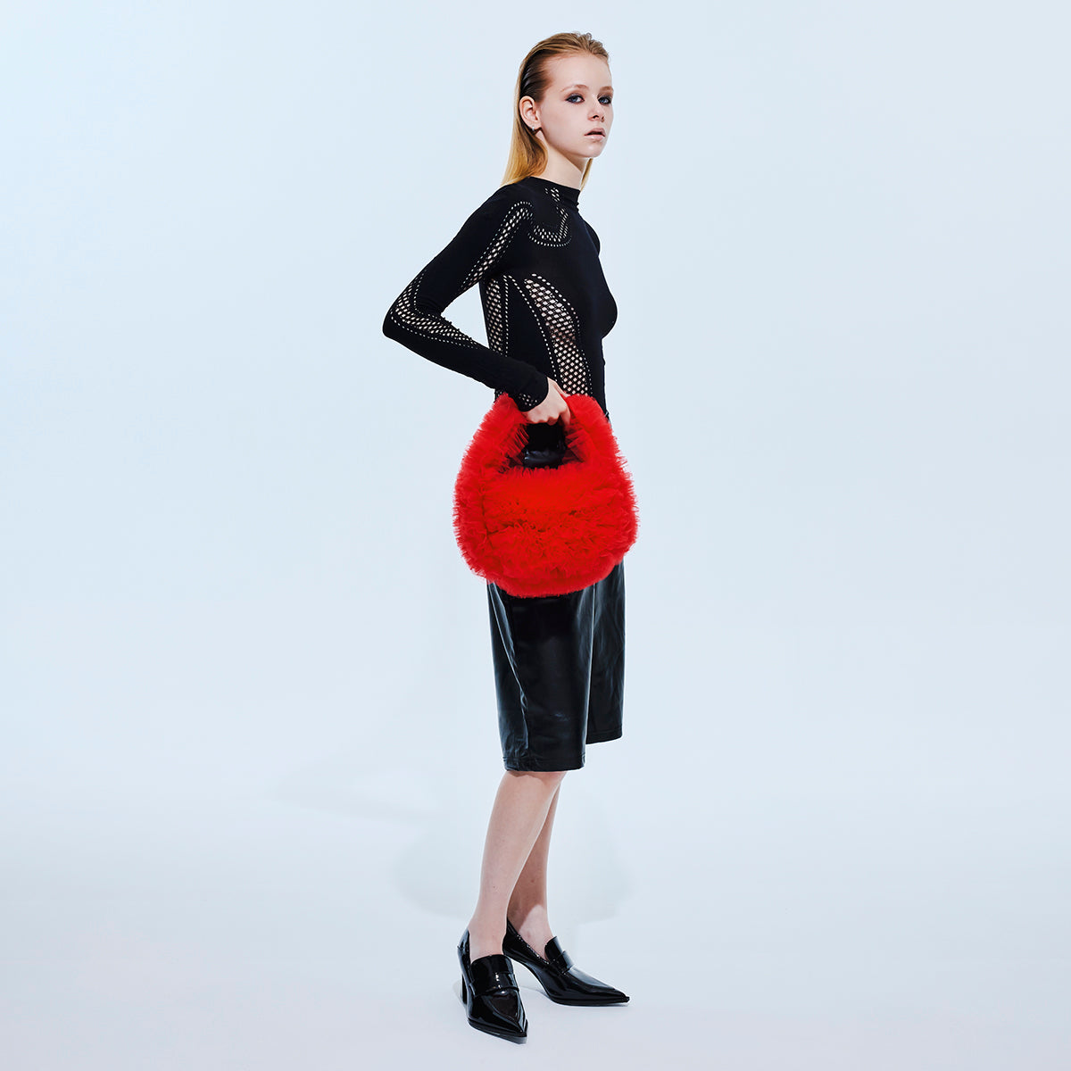 フワフワの可愛さを持ち歩く気分を楽しめるバッグです。