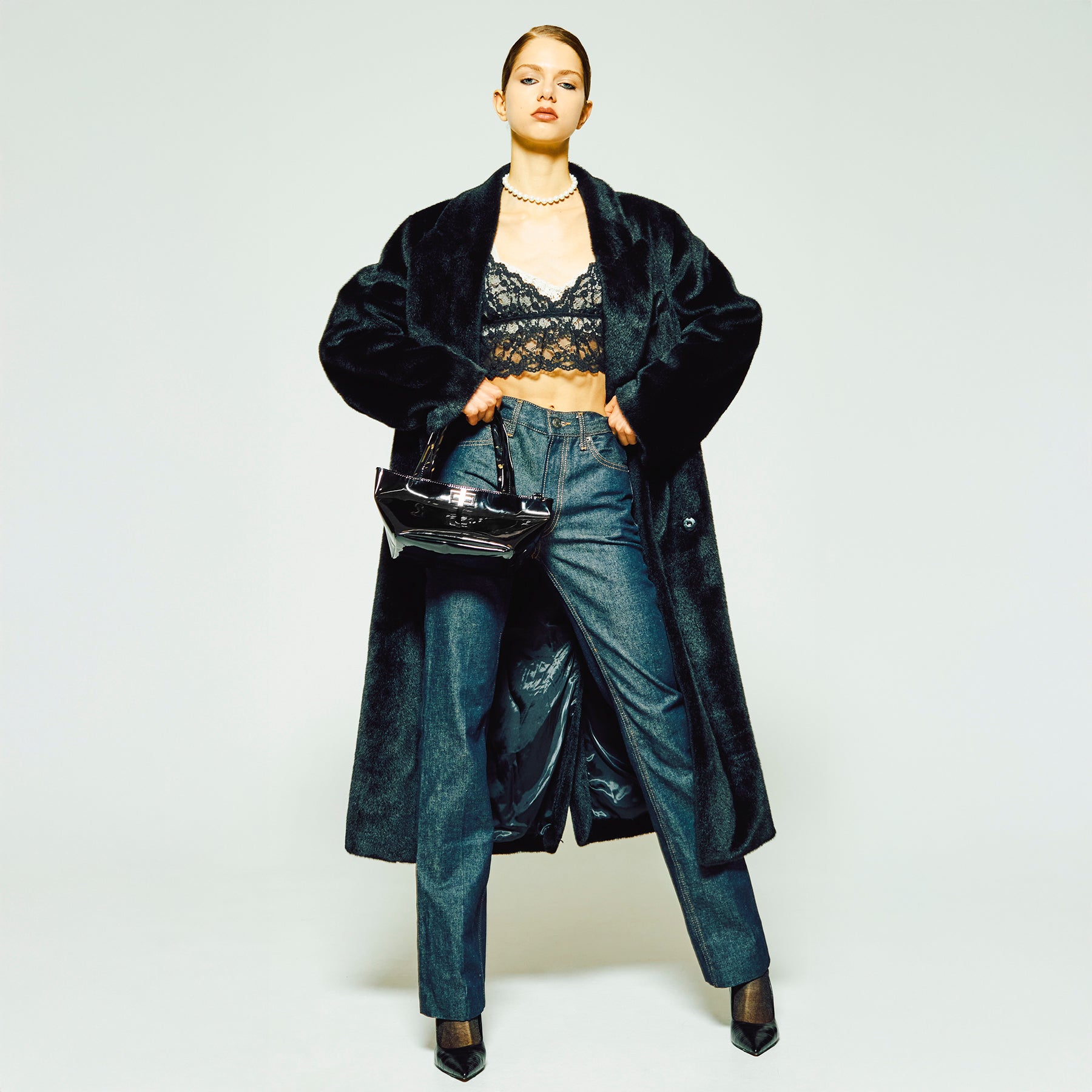 こちらの素材は樹脂仕上げのミラータイプPUレザーです。 ファッション性を優先したデザインを起用した為、縫製する工程において細かな皺などが発生しております。 HELOYSEの世界観の表現としてご承知の上、お買い求めいただけますと幸いです。 お手入れにつきましては、MATERIAL & CARE をご参照ください。