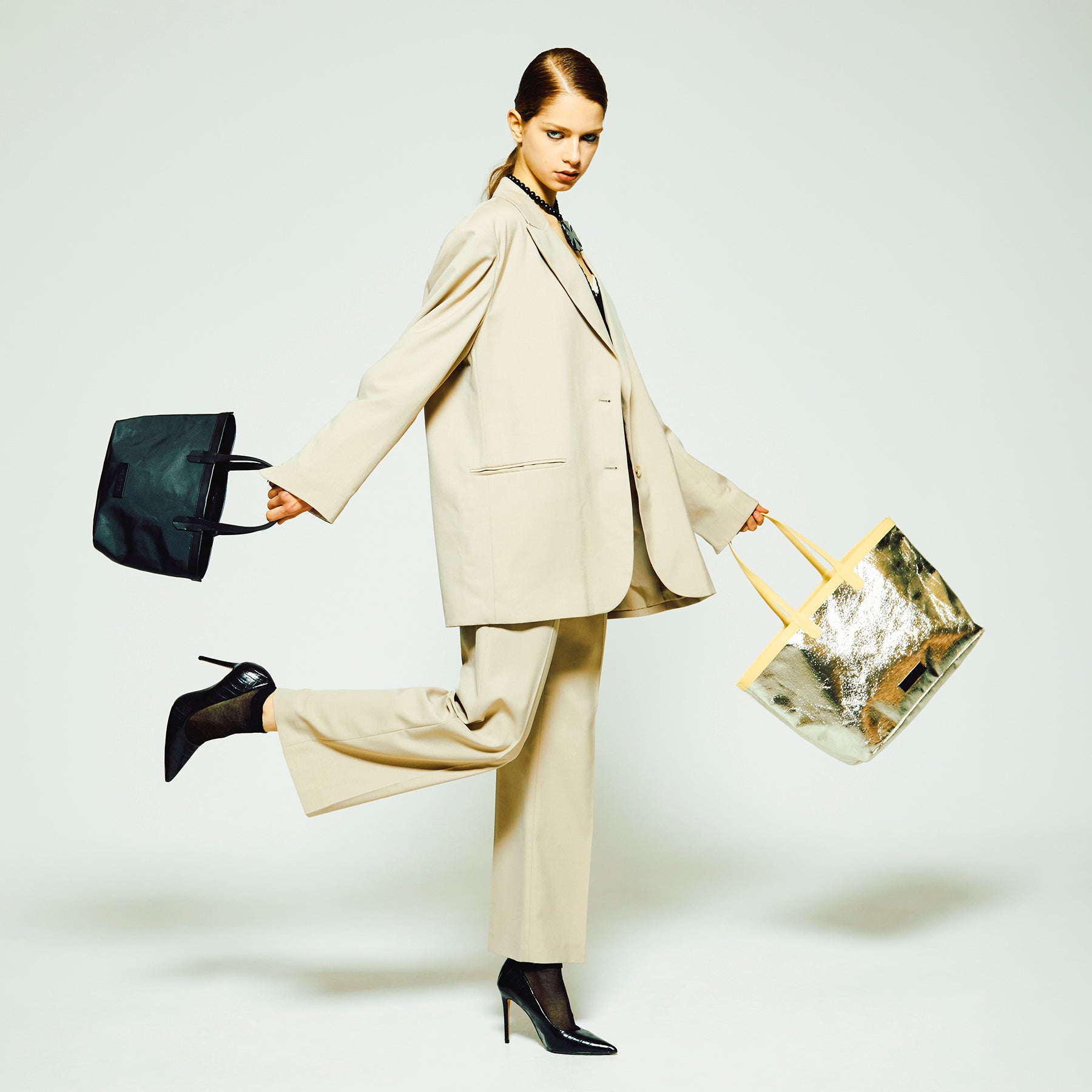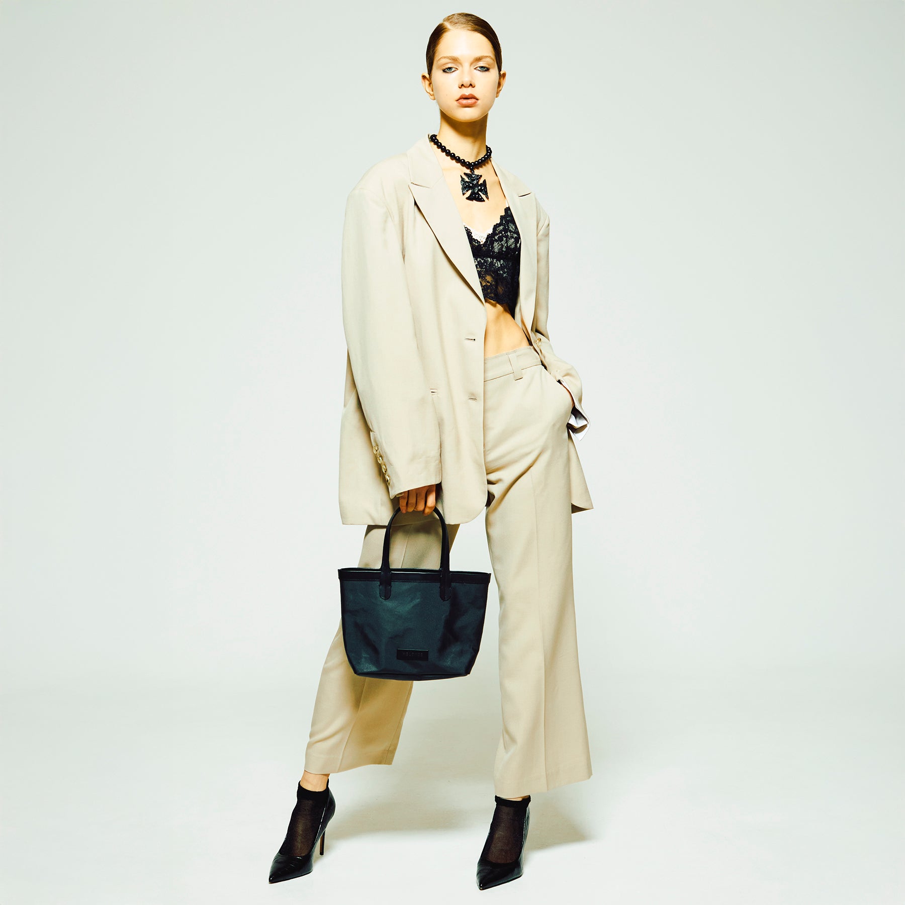 羽のように軽く優美なトートは、トワル地に上質なレザーを組み合わせ